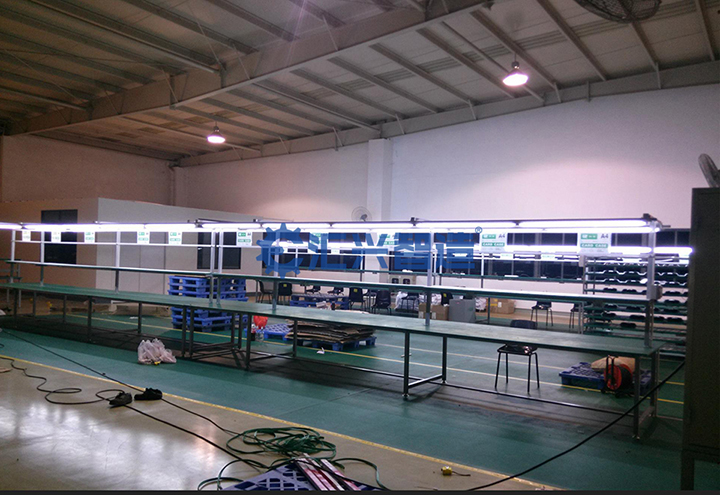 鏈板線采用A3板折制鏈板線專用軌道,而副導軌則采用角鐵制作。其中傳輸鏈條采用的是工業(yè)專用鏈板線鏈條;照明是采用單支帶罩T8LED日光燈,兩側連續(xù)安裝;工具吊軌采用專用風批吊軌鋁材,兩側每米安裝一套風批滑輪。此外,工藝看板采用專用雙杠H型鋁材做支架,每米配置一套亞克力板;采用6分鍍鋅制作而成的氣管和采用鍍鋅腳杯制作而成的地腳,共同為鏈板線的高效輸送保駕護航,能有力確保生產線的順利運行。