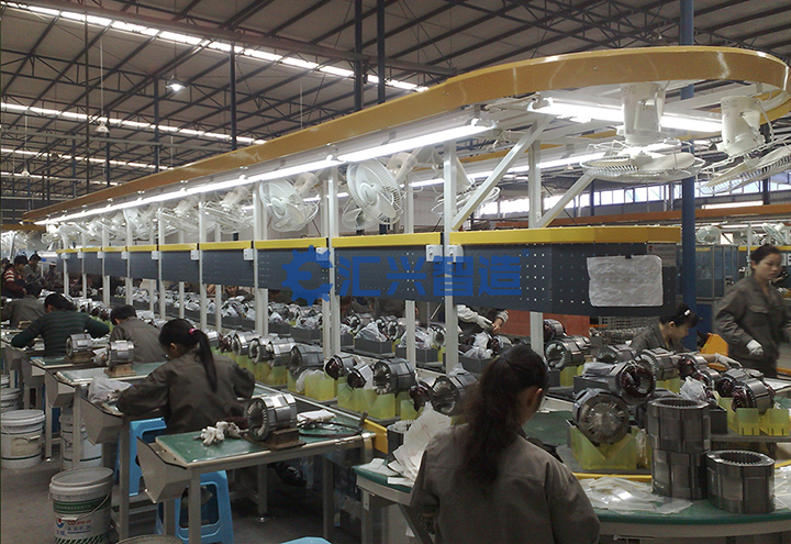 熱水器組裝線主要由鏈板輸送線組成,鏈板輸送機的輸送面平坦光滑,摩擦力小,可以安全且游刃有余地輸送熱水器配件并進行組裝。