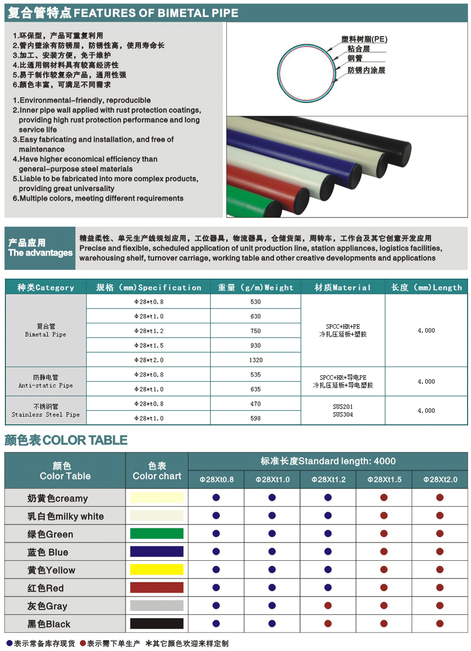 精益管,我們也經(jīng)常稱之為線棒、物流管、復合管等。是一種鍍鋅的鋼管并帶有塑料樹脂涂層。標準的精益管直徑一般是28mm,鋼管的壁厚一般在0.8mm-1.5mm之間,顏色主要為米黃色,白色,黑色,綠色等。塑膠的材質主要以PE為主。