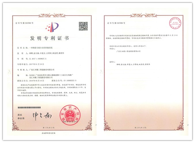 隨著科技進(jìn)步與技術(shù)創(chuàng)新不斷發(fā)展,自主知識(shí)產(chǎn)權(quán)儲(chǔ)備,尤其是創(chuàng)造性較高的發(fā)明專利已成為企業(yè)發(fā)展的核心競爭力。近日,廣東匯興精工智造股份有限公司(股票代碼:839258)又新增一項(xiàng)發(fā)明專利——《一種陶瓷馬桶自動(dòng)存胚輸送線》。