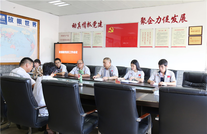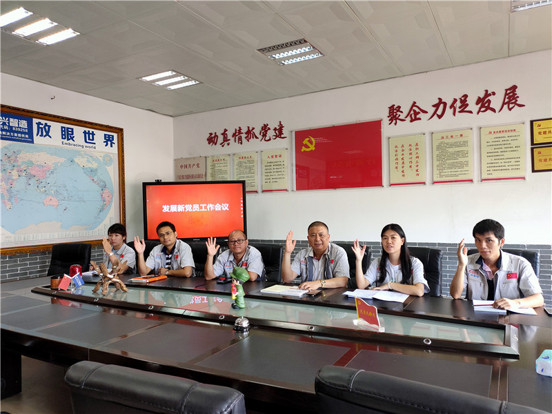 7月1日,為紀念中國共產(chǎn)黨建黨98周年,繼承和發(fā)揚黨的光榮傳統(tǒng),進一步發(fā)揮黨建引領(lǐng)作用和黨員的先鋒模范作用,以黨員帶動群眾,中國共產(chǎn)黨廣東匯興精工智造股份有限公司支部委員會(簡稱:匯興智造黨支部)組織開展“七一”黨建主題活動。匯興智造黨支部在黨員活動室召開“發(fā)展新黨員工作會議”,討論發(fā)展袁侃和蔣明華兩位同志為入黨積極分子,黨支部成員悉數(shù)參加會議。