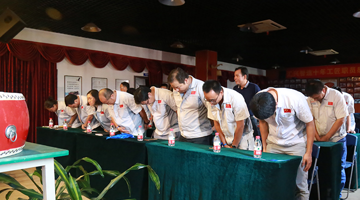 會(huì)議開始,參會(huì)人員整肅衣冠、端身正意,滿懷赤誠之心向企業(yè)三道文化“孝道、商道、人道”行三鞠躬禮,宣讀企業(yè)愿景——成為全球領(lǐng)先的整廠自動(dòng)化系統(tǒng)解決方案提供商,企業(yè)使命——做受尊敬的好人、造受尊敬的產(chǎn)品、辦受尊敬的企業(yè)、建受尊敬的平臺,企業(yè)精神——用情做人、用心做事,團(tuán)隊(duì)精神——忠誠團(tuán)結(jié)、勤奮進(jìn)取。