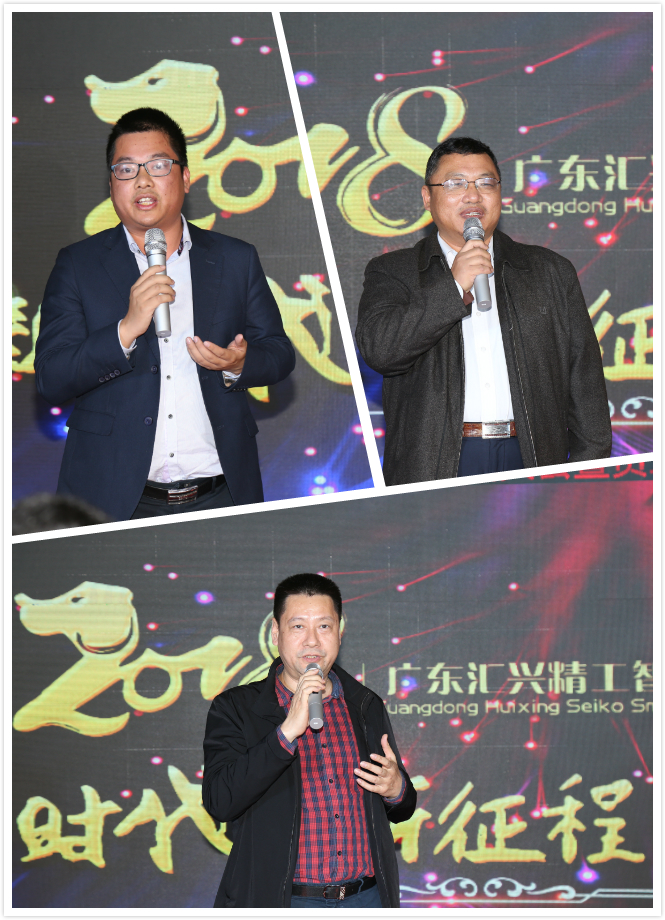 東莞證券何總、大信會計事務(wù)所黃總、華商律師事務(wù)所姜總等嘉賓致辭,均表示在2017年與匯興智造合作得相當(dāng)愉快,同賀匯興智造取得驕人成績,并表達(dá)了在2018與匯興智造繼續(xù)合作的愿望,共祝匯興智造再創(chuàng)輝煌。