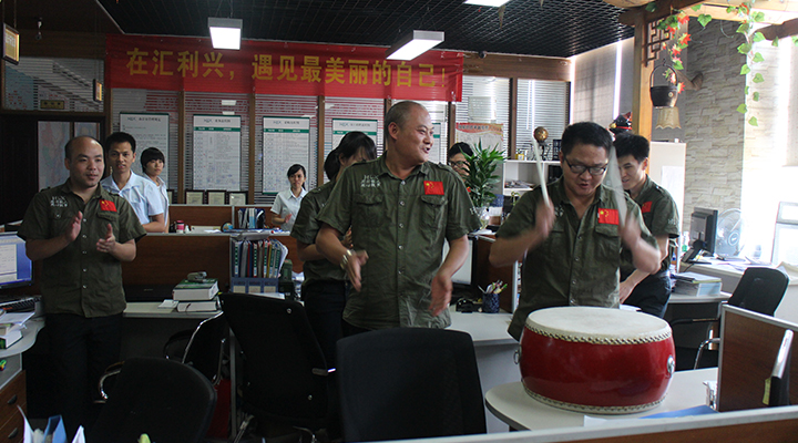 人逢喜事精神爽,25日單天,匯利興集團(tuán)設(shè)備部門同時(shí)”斬獲“兩份大額訂單:衛(wèi)浴生產(chǎn)線與滾筒輸送線總價(jià)46萬;上下層組裝線32萬。恰逢科協(xié)領(lǐng)導(dǎo)到來,由工程業(yè)務(wù)員鐘文于公司辦公室擊鼓激勵(lì)士氣。