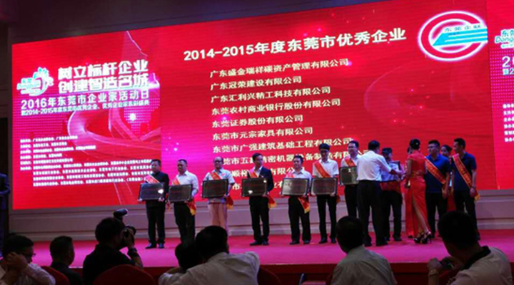 東莞市企業(yè)聯(lián)合會(huì)、東莞市企業(yè)家協(xié)會(huì),于2016年5月25日18:30在東莞國(guó)際會(huì)展大酒店隆重舉行“2015年度東莞市優(yōu)秀企業(yè)、優(yōu)秀企業(yè)家表彰盛典”。匯利興集團(tuán)“破五關(guān)“脫穎而出,榮獲 “2014/2015年度東莞市優(yōu)秀企業(yè)”。