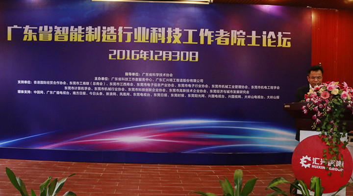 2016年12月30日上午,由廣東省科學(xué)技術(shù)協(xié)會(huì)指導(dǎo)、廣東省科技工作者服務(wù)中心和廣東匯興精工智造股份有限公司(股票代碼:839258)共同舉辦的“廣東省智能制造行業(yè)科技工作者院士論壇”在匯興智造東莞總部隆重舉行。中國(guó)工程院院士孫玉、廣東省科學(xué)技術(shù)協(xié)會(huì)副主席馮日光、廣東省科技工作者服務(wù)中心主任廖仕明、東莞市科學(xué)技術(shù)協(xié)會(huì)副主席許為豪、東莞市大嶺山鎮(zhèn)副鎮(zhèn)長(zhǎng)蔡容穩(wěn)、東莞職業(yè)技術(shù)學(xué)院計(jì)算機(jī)系主任胡選子、江西理工大學(xué)機(jī)電工程學(xué)院書記劉政、副院長(zhǎng)劉祚時(shí)、東莞理工學(xué)院原副書記王江水、東莞理工學(xué)院原副校長(zhǎng)鄒小平、江西省興國(guó)縣委常委李明海、武警126師原政委趙燕清、意大利智能制造工程中心顧問(wèn)高級(jí)工程師艾德羅教授、匯興智造董事長(zhǎng)鐘輝、東莞職業(yè)技術(shù)學(xué)院副教授辛曼玉,以及來(lái)自全國(guó)各地的優(yōu)秀的智能制造行業(yè)代表200多人參加了論壇。