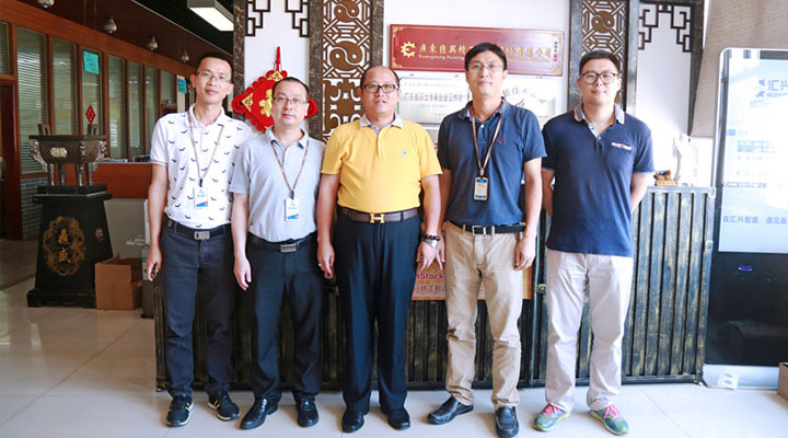 2017年628日,東莞市大嶺山鎮(zhèn)工商局王毅局長(zhǎng)、袁洪副局長(zhǎng)、張股長(zhǎng)和鐘股長(zhǎng)一行蒞臨廣東匯興精工智造股份有限公司(股票代碼:839258調(diào)研指導(dǎo)。匯興智造董事長(zhǎng)鐘輝對(duì)大嶺山鎮(zhèn)領(lǐng)導(dǎo)的到來表示熱烈的歡迎,并陪同他們參觀了匯興智造獨(dú)具特色且富有濃郁文化氣息的工業(yè)4.0智能裝備體驗(yàn)館,隨后雙方就公司的發(fā)展情況等問題展開了深入的交流和探討。