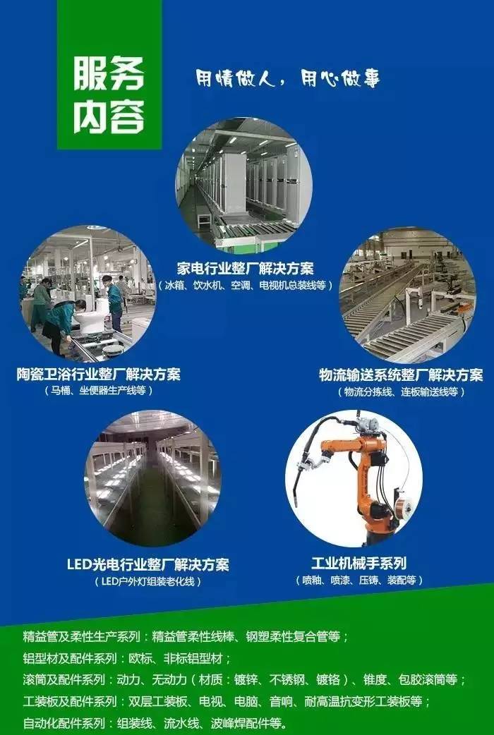 廣東匯興精工智造股份有限公司作為國家高新技術(shù)企業(yè),正逐步成為全球領(lǐng)先的整廠自動化系統(tǒng)解決方案提供商,匯興智造家用電器、衛(wèi)浴陶瓷、新能源、LED、汽車零部件、家具廚具、物流輸送、精密電子電器、醫(yī)藥食品、包裝印刷等細分領(lǐng)域提供整廠自動化系統(tǒng)解決方案及精密工業(yè)自動化配件一站式采購服務(wù)。其中,家電生產(chǎn)線是匯興智造的王牌產(chǎn)品,主要為:電冰箱、微波爐、空調(diào)、液晶電視機、熱水器、烤箱等制造企業(yè)提供智能自動化生產(chǎn)方案