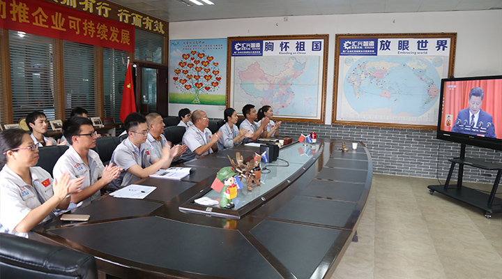 喜迎黨的十九大?共圓小康中國夢(mèng)—匯興智造組織黨員觀看十九大開幕式