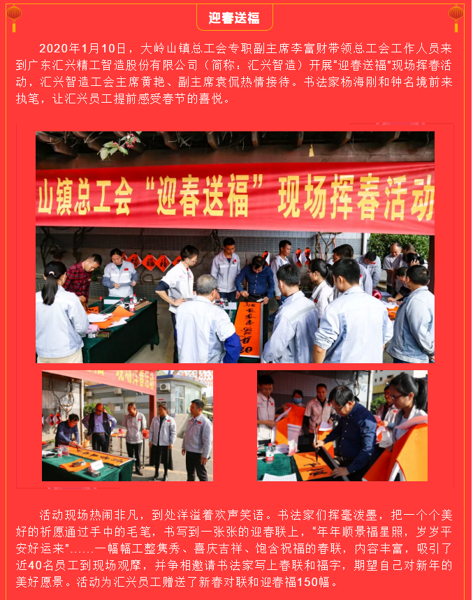翰墨飄香送春聯(lián),文化進(jìn)企暖人心——鎮(zhèn)總工會(huì)來匯興開展“迎春送?!爆F(xiàn)場揮春活動(dòng)