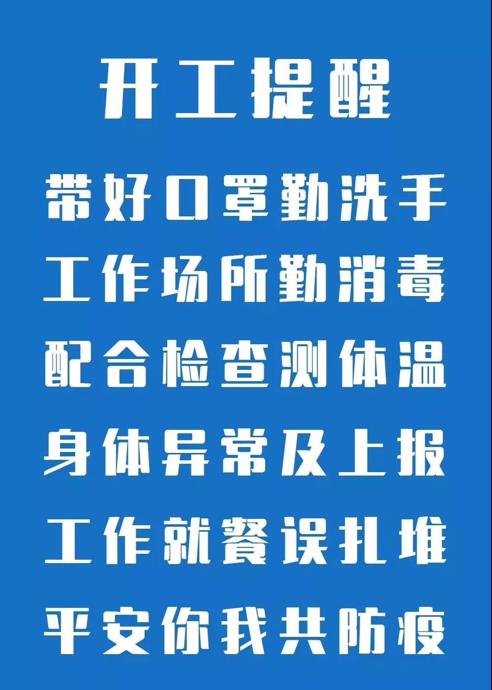 2020新年伊始,匯興智造在此向大家致以新春的問候和開工復(fù)產(chǎn)的美好祝愿!感謝大家一直以來對匯興智造的支持與厚愛!這個安靜心悸的春節(jié)注定特殊,新型冠狀病毒肺炎的爆發(fā)震驚世界,舉國上下為之揪心!自此次新冠病毒肺炎疫情發(fā)生以來,集團高度重視,為保障廣大員工及客戶的生命安全和身體健康、協(xié)同各界共抗疫情,開展了一系列的公益善舉及防控措施。 為了響應(yīng)國家號召,執(zhí)行政府相關(guān)部門的要求,避開春節(jié)返程高峰,降低新冠病毒傳播,保障每一位員工身體健康,集團總部工廠原定于2月3日的開工日期,改調(diào)至2月18日,已于當日正式開工,并深入平穩(wěn)推動復(fù)工復(fù)產(chǎn)。