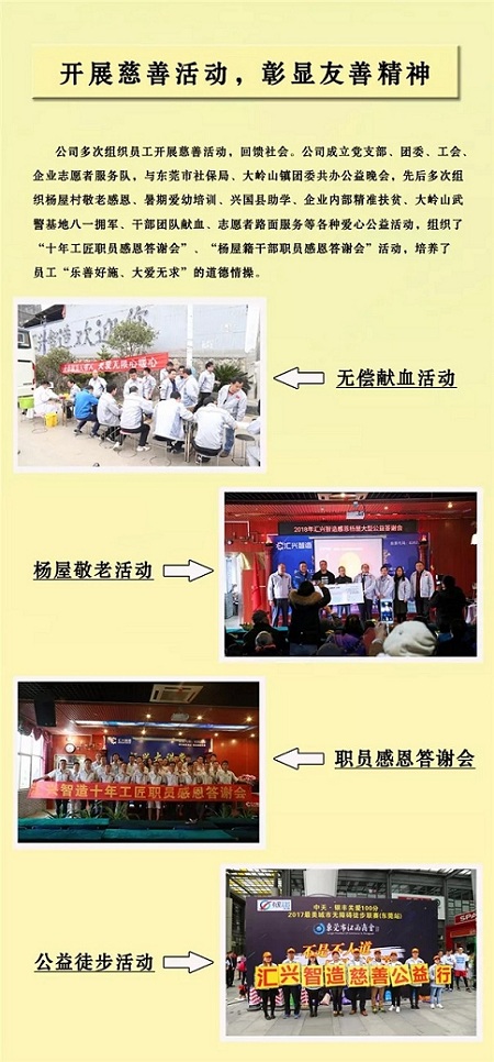 如果信念有顏色,那一定是中國紅!無償獻血是無私奉獻、救死扶傷的崇高行為,是我國血液事業(yè)發(fā)展的強大助力和保障。匯興智造作為東莞市首批10家“友善企業(yè)”之一,始終在堅持以人為本,注重人文關(guān)懷的同時,致力于將“友善”的價值觀、理念融入公司日?;顒又校ㄟ^快樂工作,幸福生活的獨具特色的“友善文化”和“一個行業(yè) 一個家庭 一所學(xué)校 一支軍隊”的人文理念,把社會主義核心價值觀融入到員工思想教育工作之中;夯實“友善企業(yè)”基礎(chǔ)、打造“友善環(huán)境”陣地、構(gòu)建友善勞動關(guān)系。在點點滴滴中融合、滲透,全方位落地生根,營造和諧友善氛圍和人文環(huán)境,積極提升員工的幸福感和自豪感,讓員工在公司平臺上充分展現(xiàn)自我,實現(xiàn)自身價值,創(chuàng)享更加美好的生活。