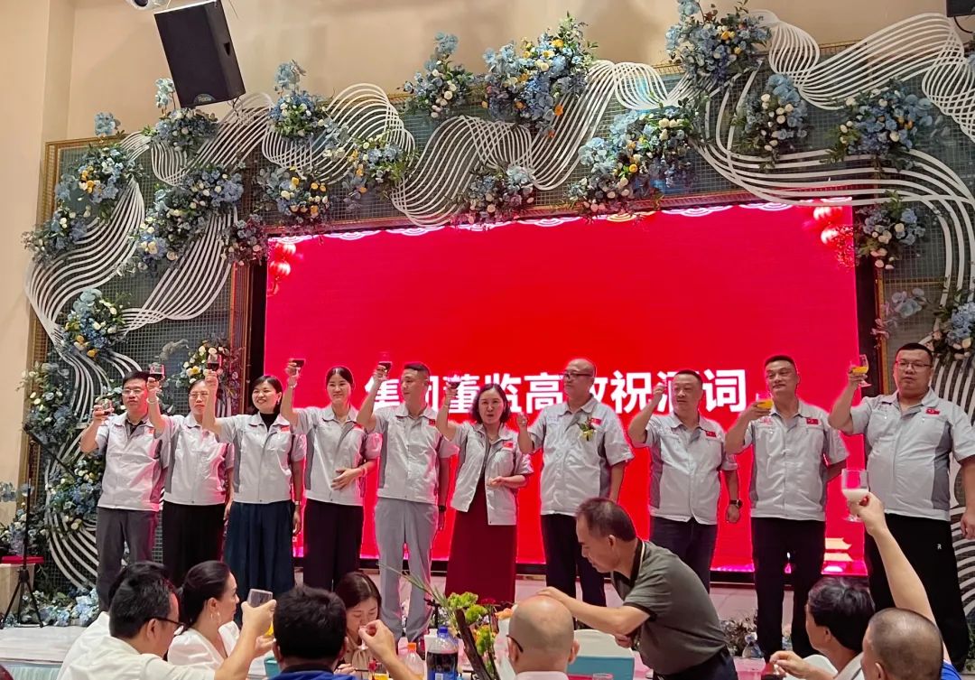 2023年8月10日,在匯興智能設(shè)備制造增資擴產(chǎn)項目開工奠基儀式圓滿成功后,與會領(lǐng)導嘉賓一同前往答謝宴現(xiàn)場,齊聚一堂、共